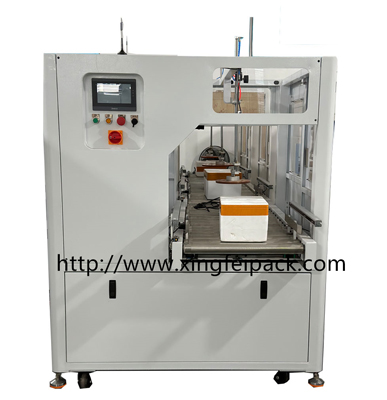 在線泡沫封箱機使用普通膠帶或透明膠帶封標準規格的泡沫箱及特殊紙箱的半自動化設備,該設備采用人性化智能人機界面控制系統設計,不僅提高了機器的生產效率,而且降低了工人的勞動強度;設備采用了雷賽步進電機、亞德客氣缸等元器件,提高了設備的穩定性和可靠性;該設備適用于生鮮、水果泡沫箱(方形、圓形)的口部密封,設備操作簡便,安全可靠,易于操作。